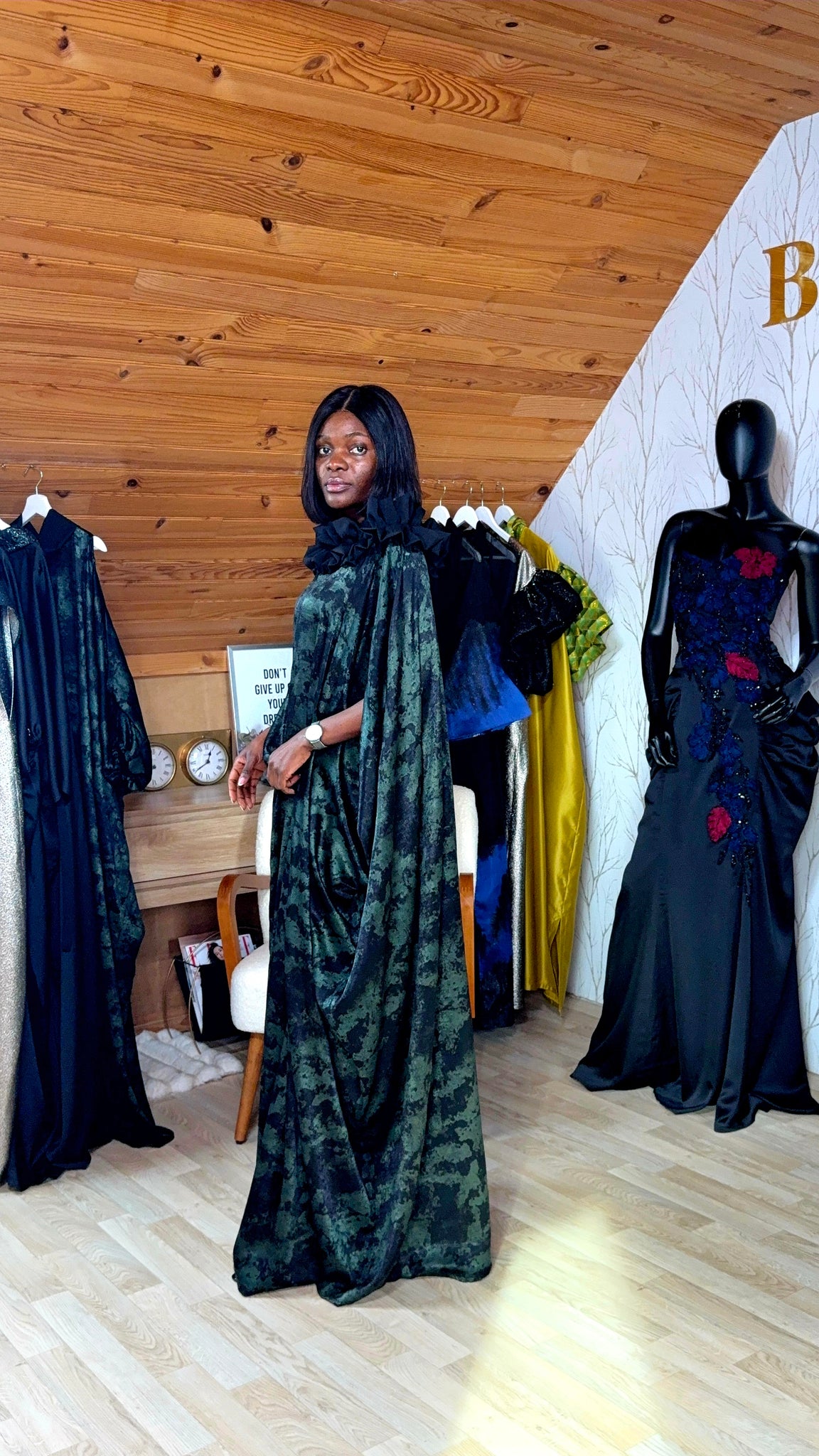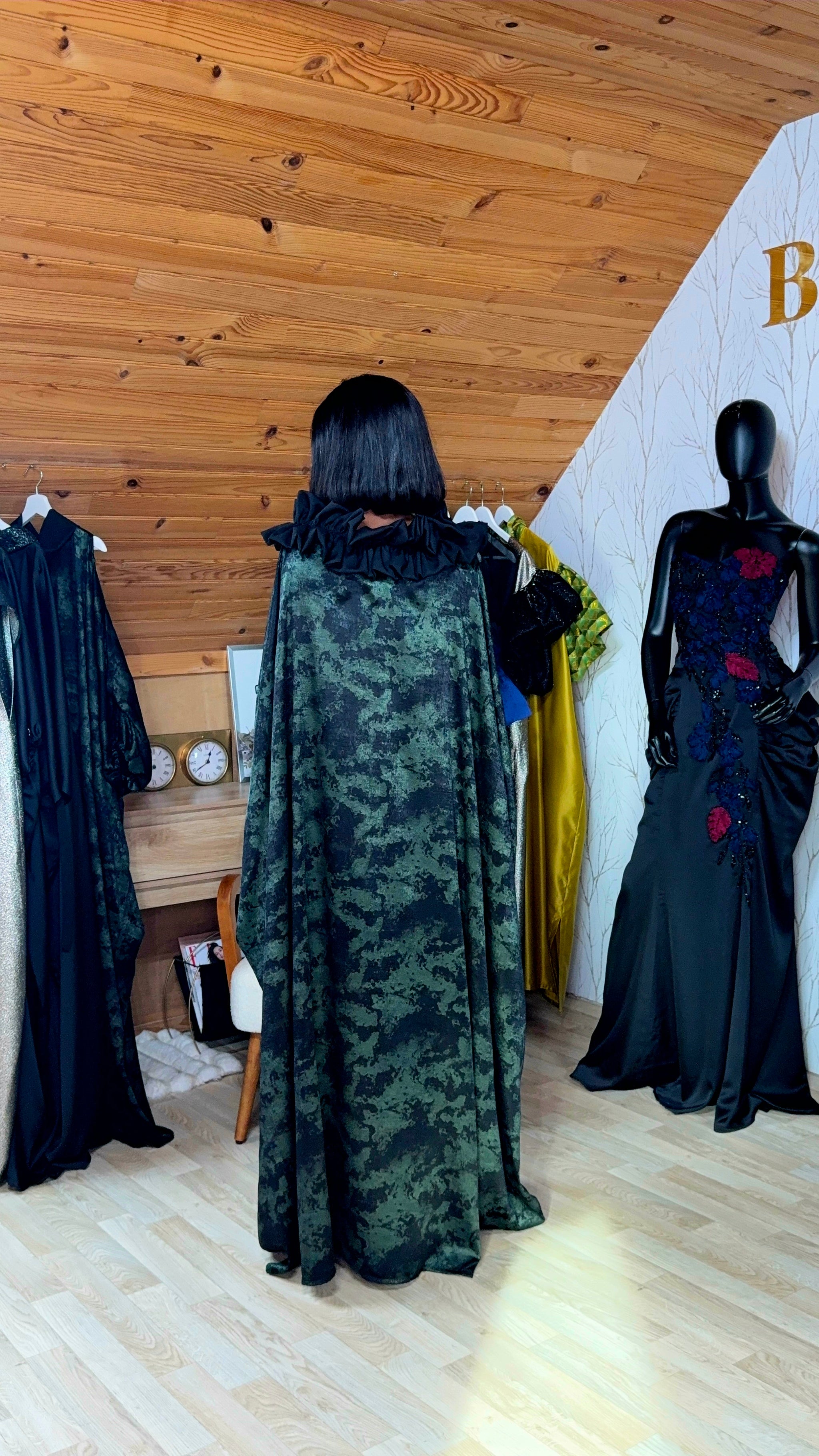 Grand Boubou en satin soie très souple avec touche col bateaux a froufrou crêpeé, une merveille qui vous metrage en confiance tout en restant confortable.