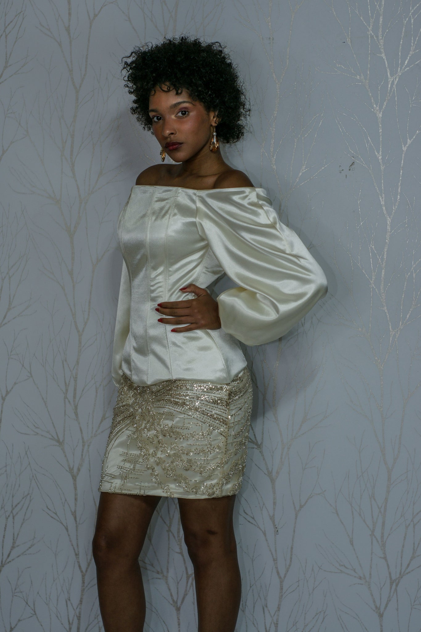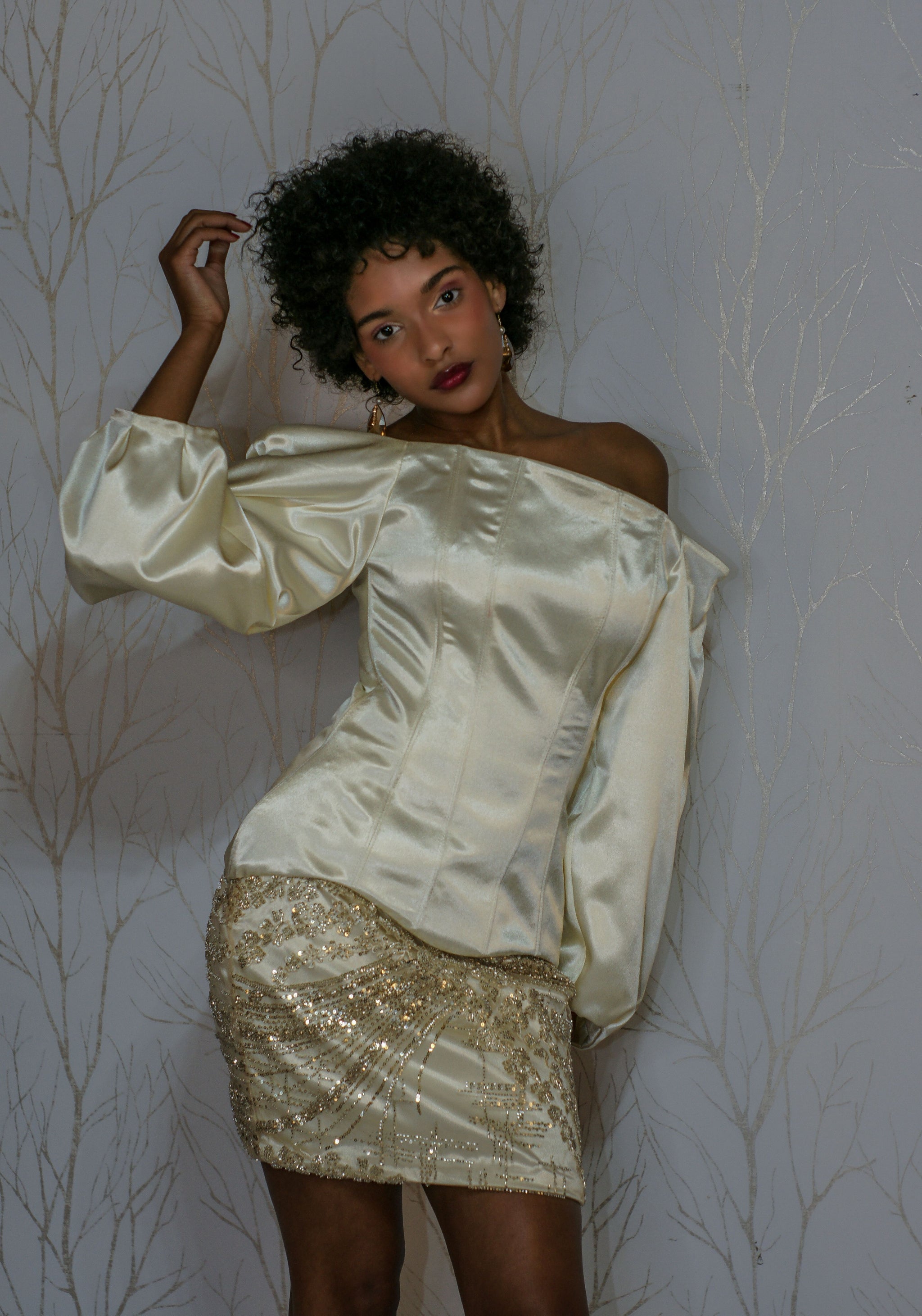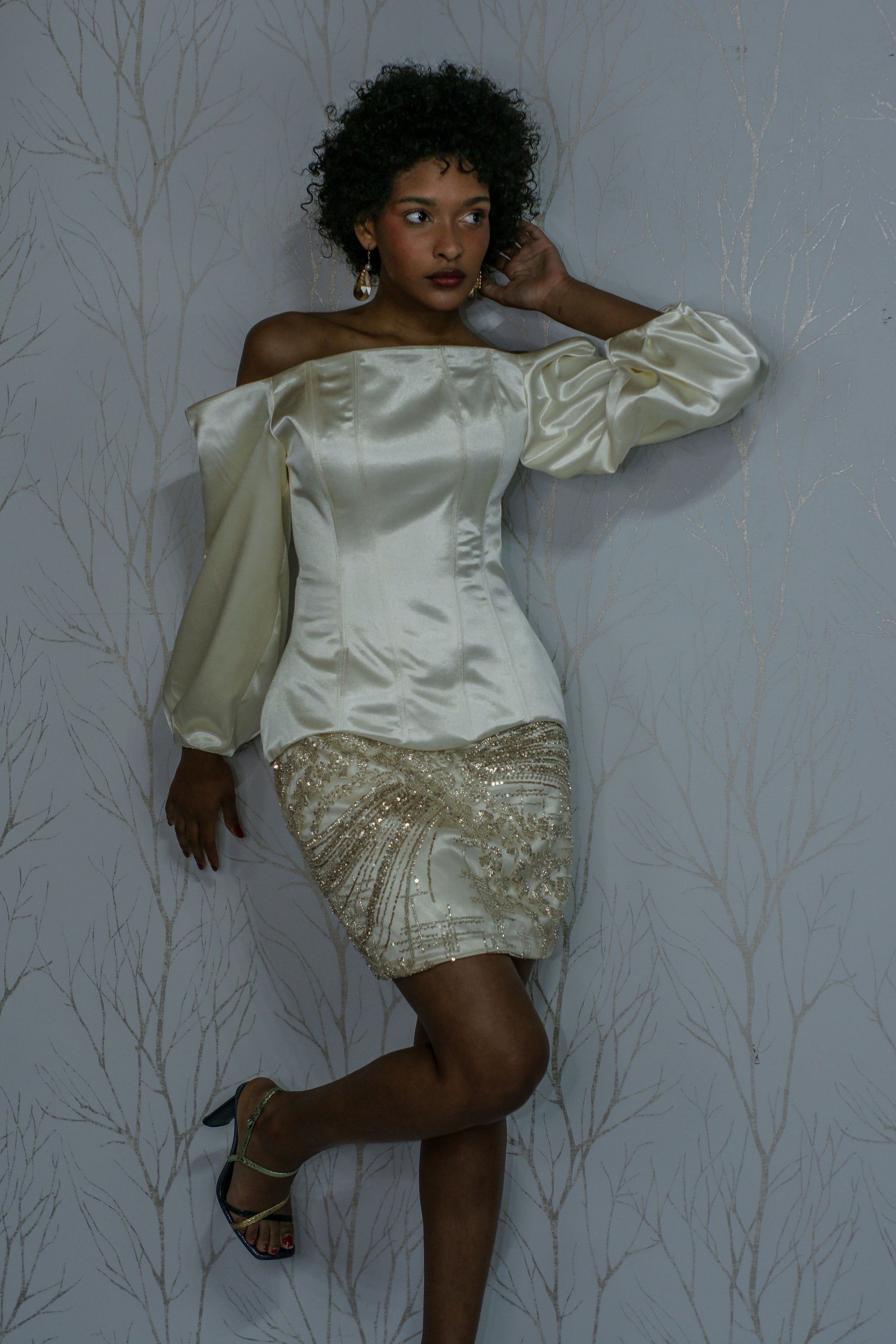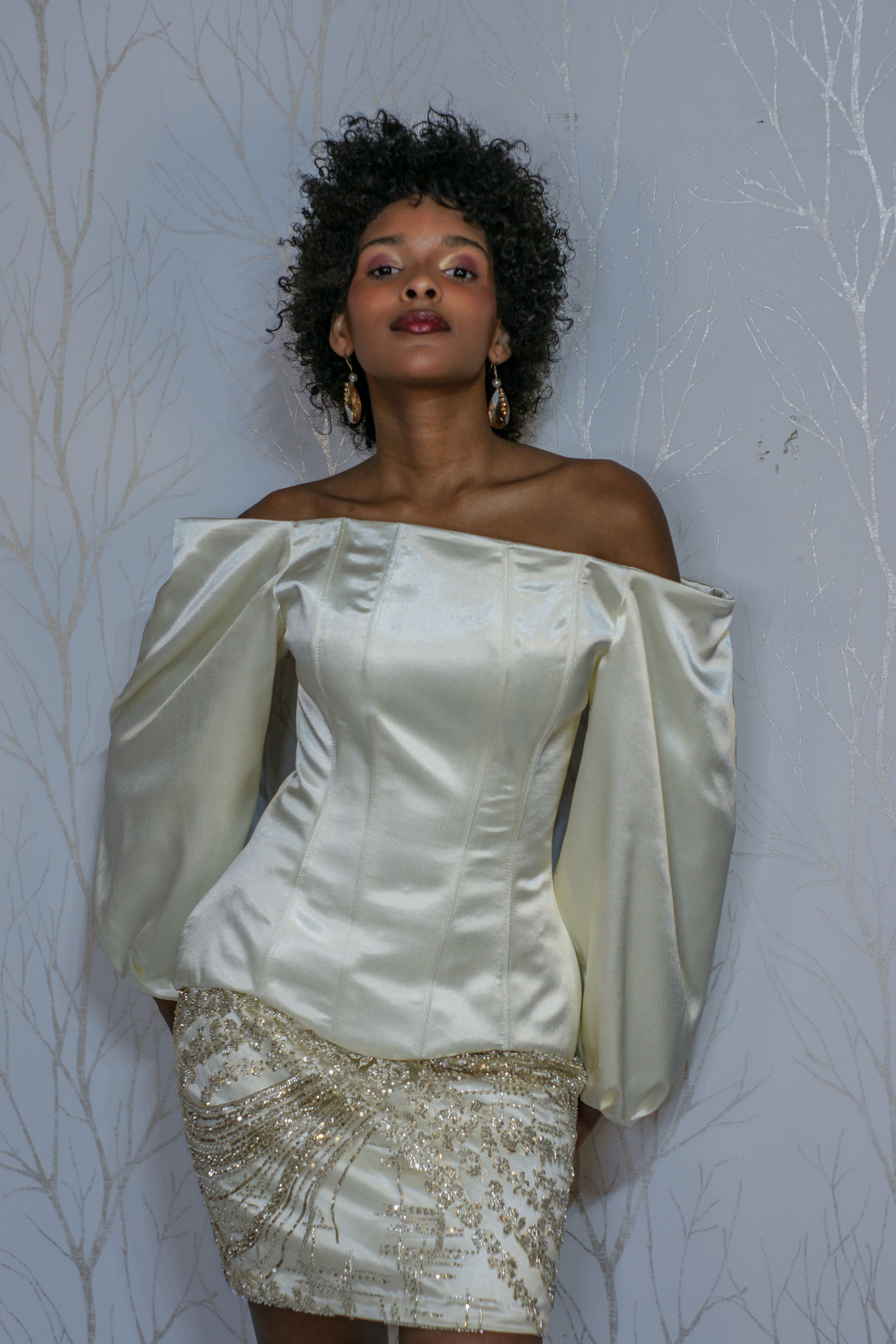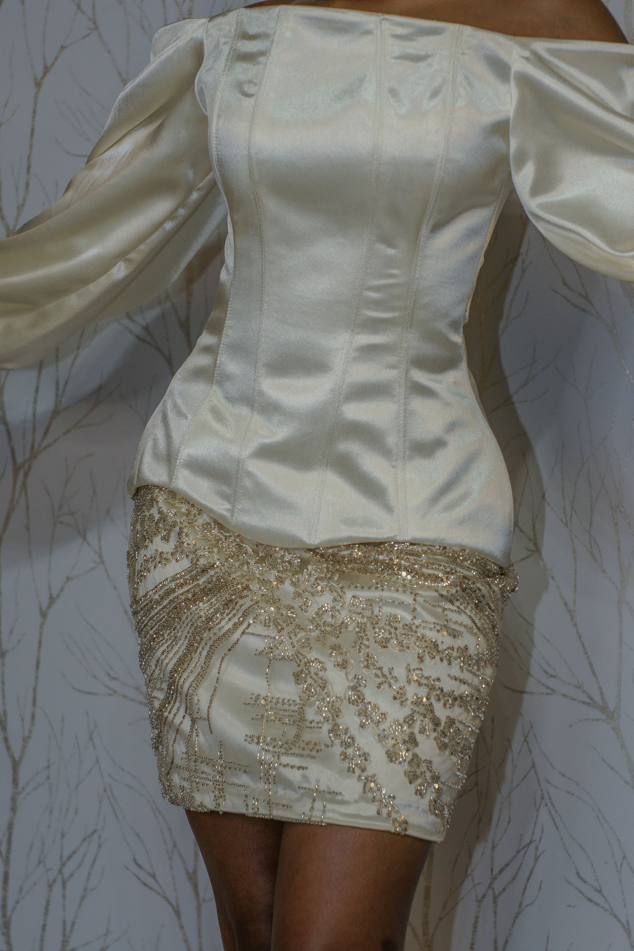 Le haut structuré par un corset affirme votre féminité tandis que le laçage du dos garantit une silhouette affinée. La jupe courte en dentelle perlées vous met en lumière grâce a ses strasses .